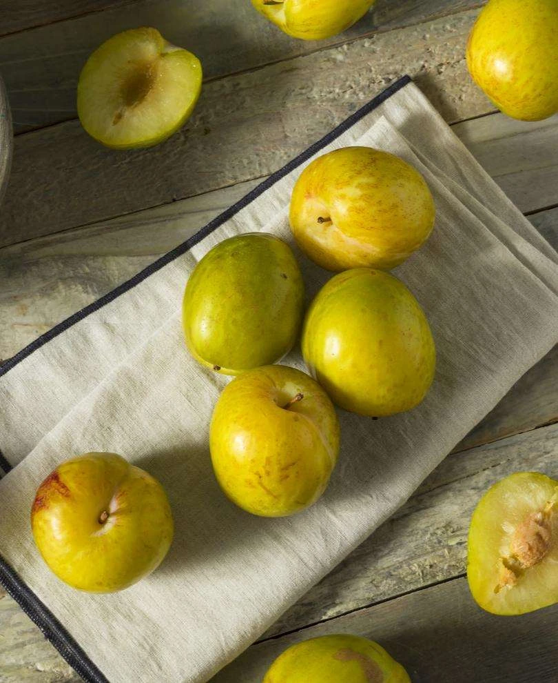 Enjoy explosive, sweet-as-honey flavor! This green fruit with a red blush hangs on the tree and can be eaten for four to six weeks as it keeps getting sweeter. It extends the stone fruit season and can be harvested into October. when it will still have a distinctive crunch.